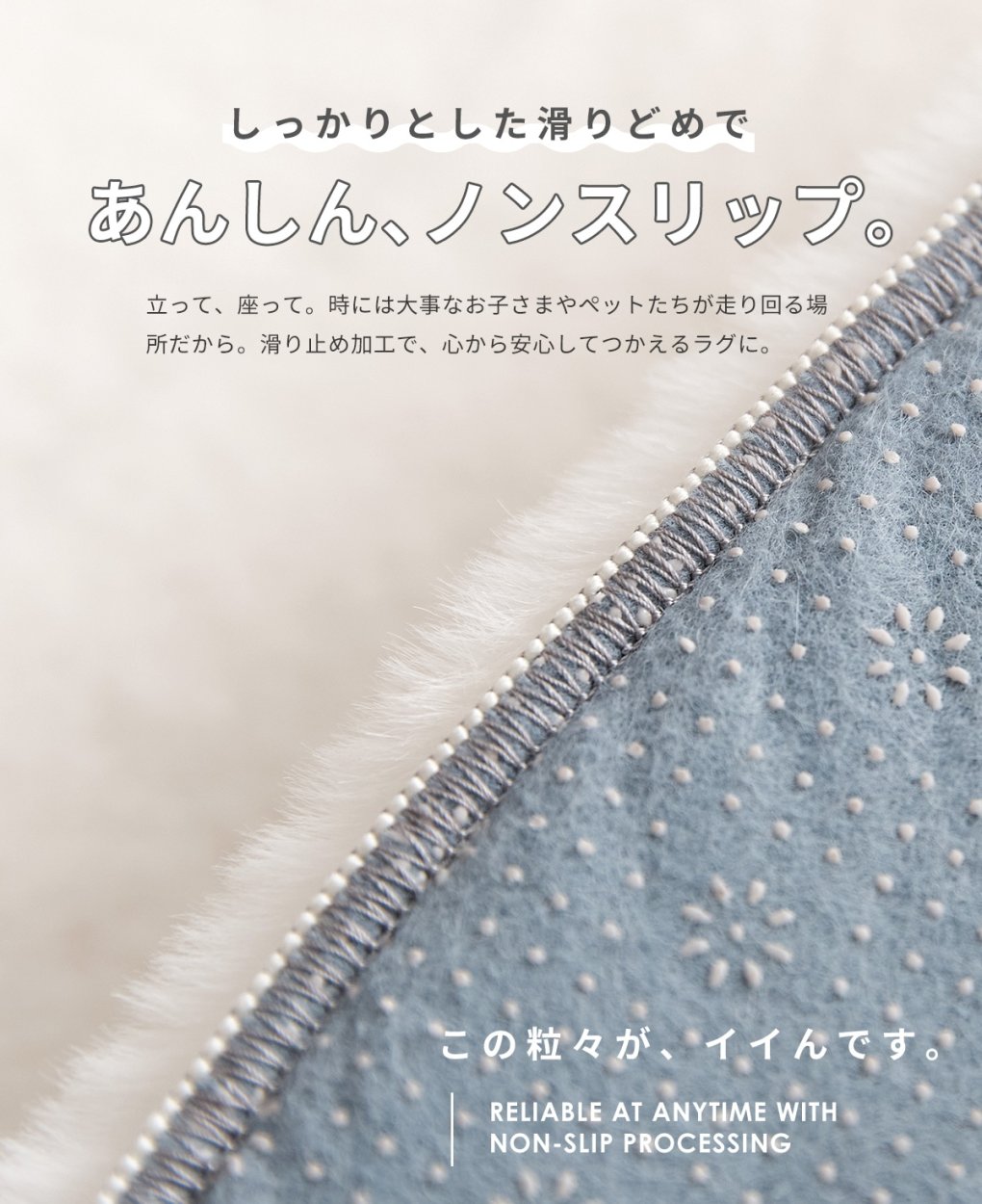 裏面には滑り止め加工が施されておりペットやお子様のいるご家庭でも安心!