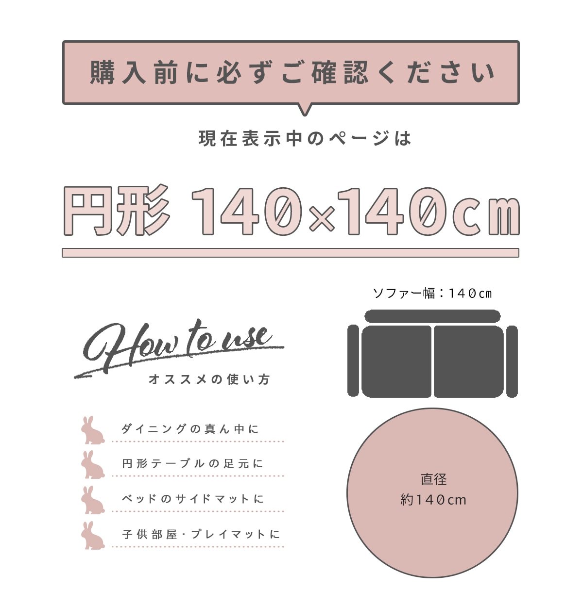 ラビットファータッチラグ 円形140cm