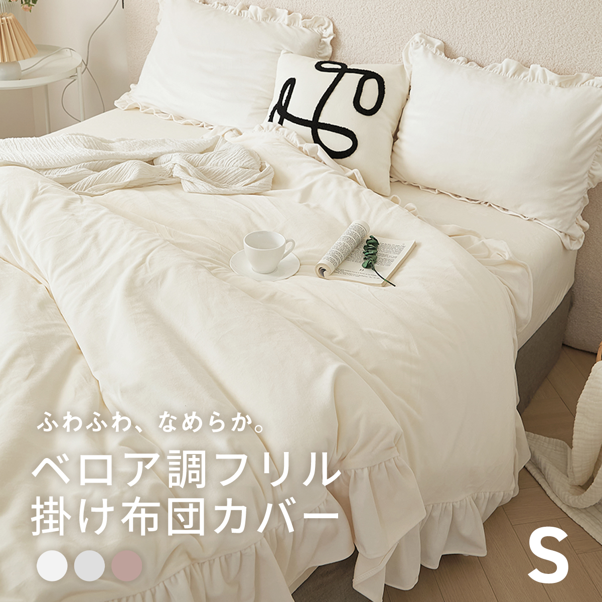 ベロア調フリル掛け布団カバー シングル