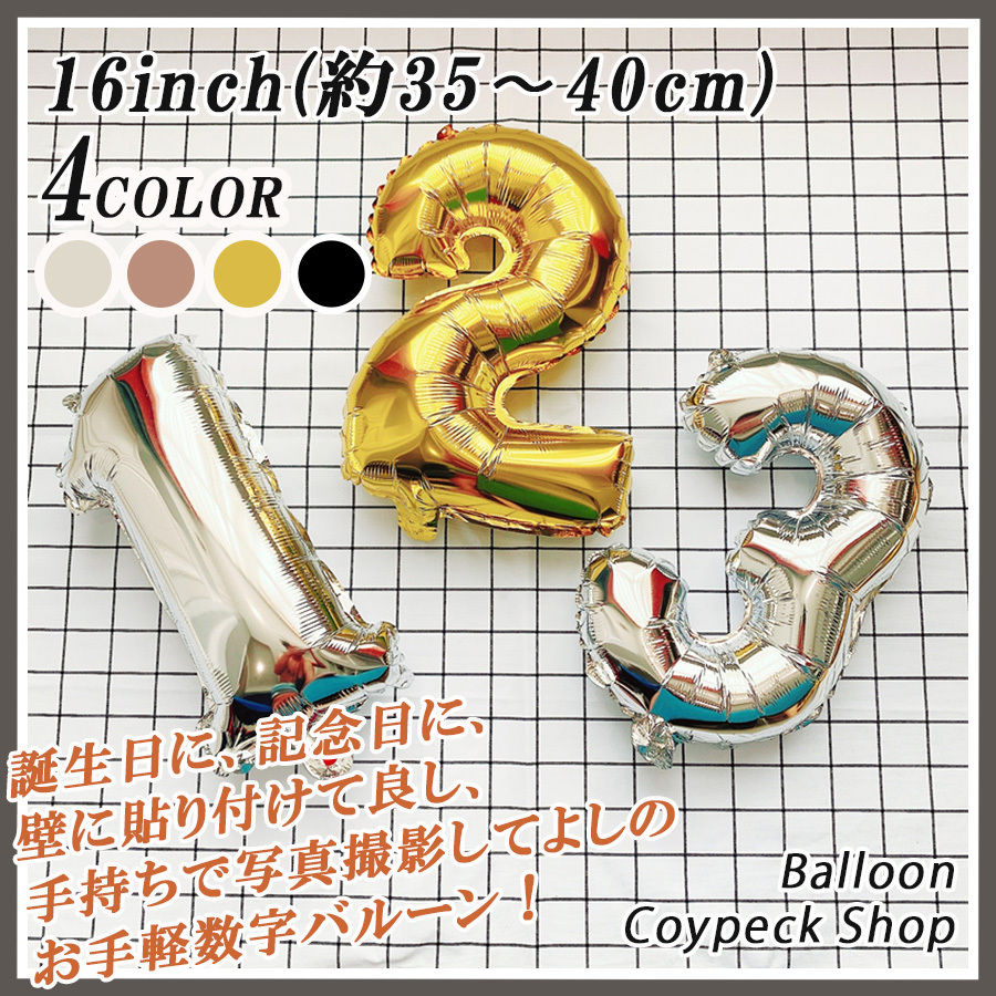 16インチ 誕生日 飾り付け ナンバーバルーン 風船 数字 手持ちサイズ(35-40cm)