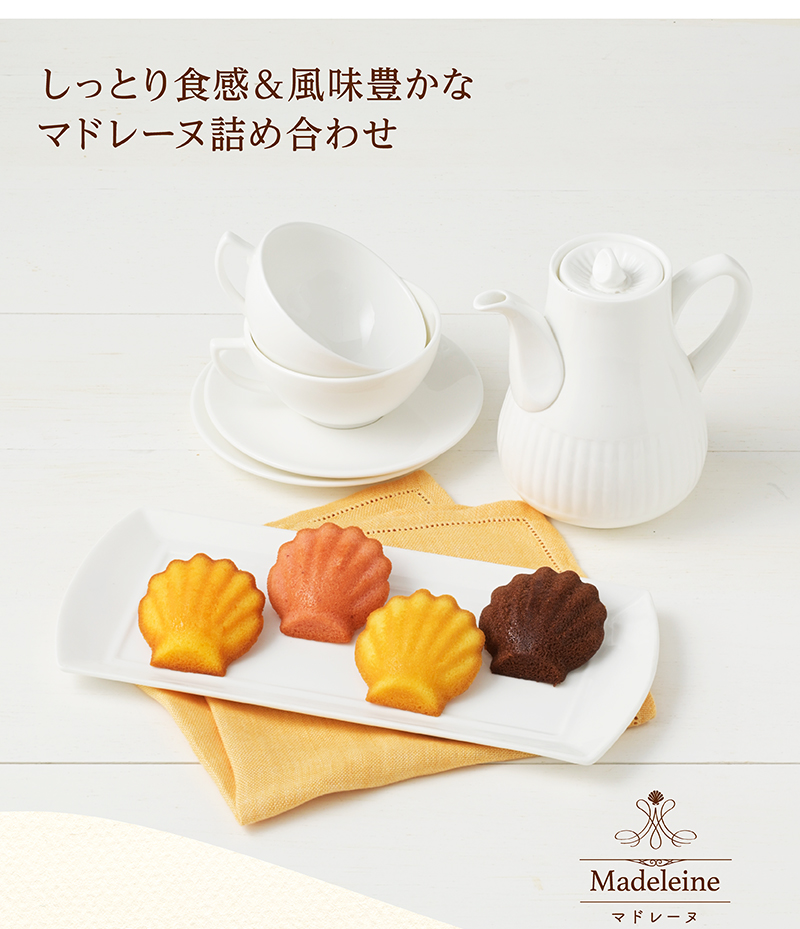 厳選した素材の味を引き立て、香り高く風味豊かに焼き上げた、貝殻をかたどったマドレーヌ。