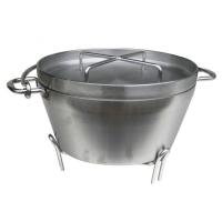 ●サイズ/内径259×深さ115mm ●外形/幅350×奥行280×高さ160mm ●重量/約5.2kg ●満水容量/約5.2L ●材質/ステンレス ●付属品/ステンレス底網、専用ステンレススタンド