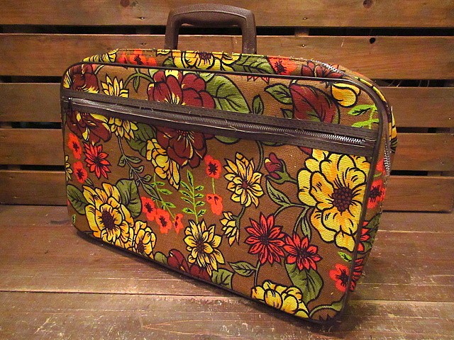 ビンテージ70’s★Bantam Travelwareレトロ花柄トランク茶30★200216n8-bag-trkスーツケース旅行カバン雑貨鞄ブラウントラベルバッグ