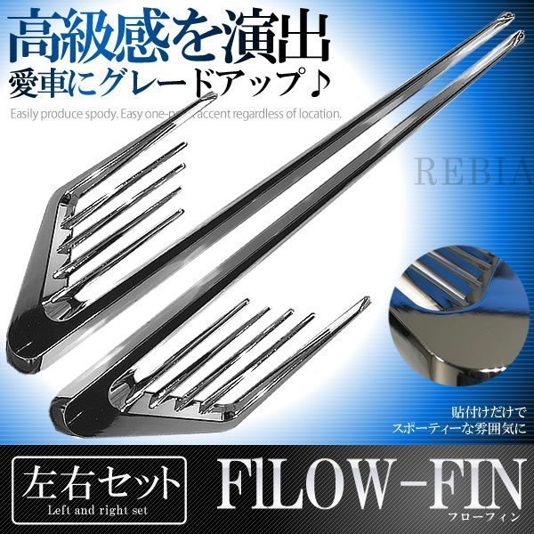 メッキ エンブレム エアロ フェンダー フローフィン シルバー 左右セット サイド 汎用 エアロパーツ ドレスアップ 外装
