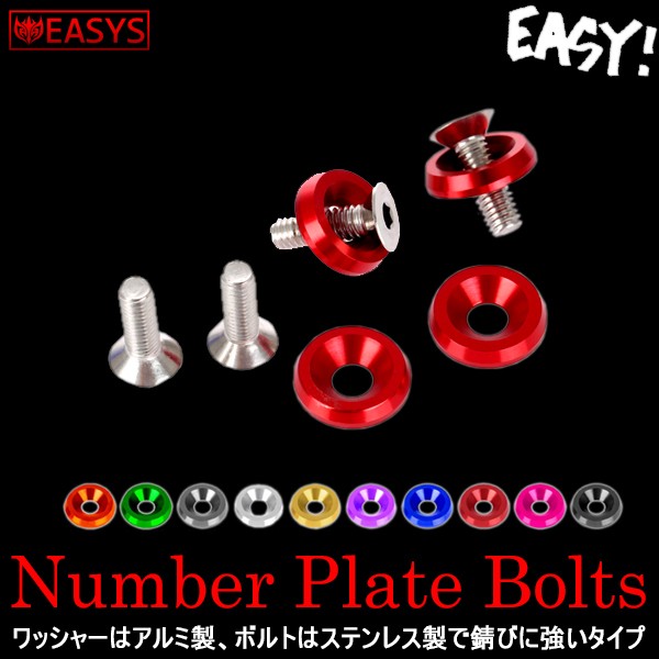 ボルト ワッシャー 4個セット ナンバープレート フェンダー アルミ ステンレス M6 汎用 車 外装