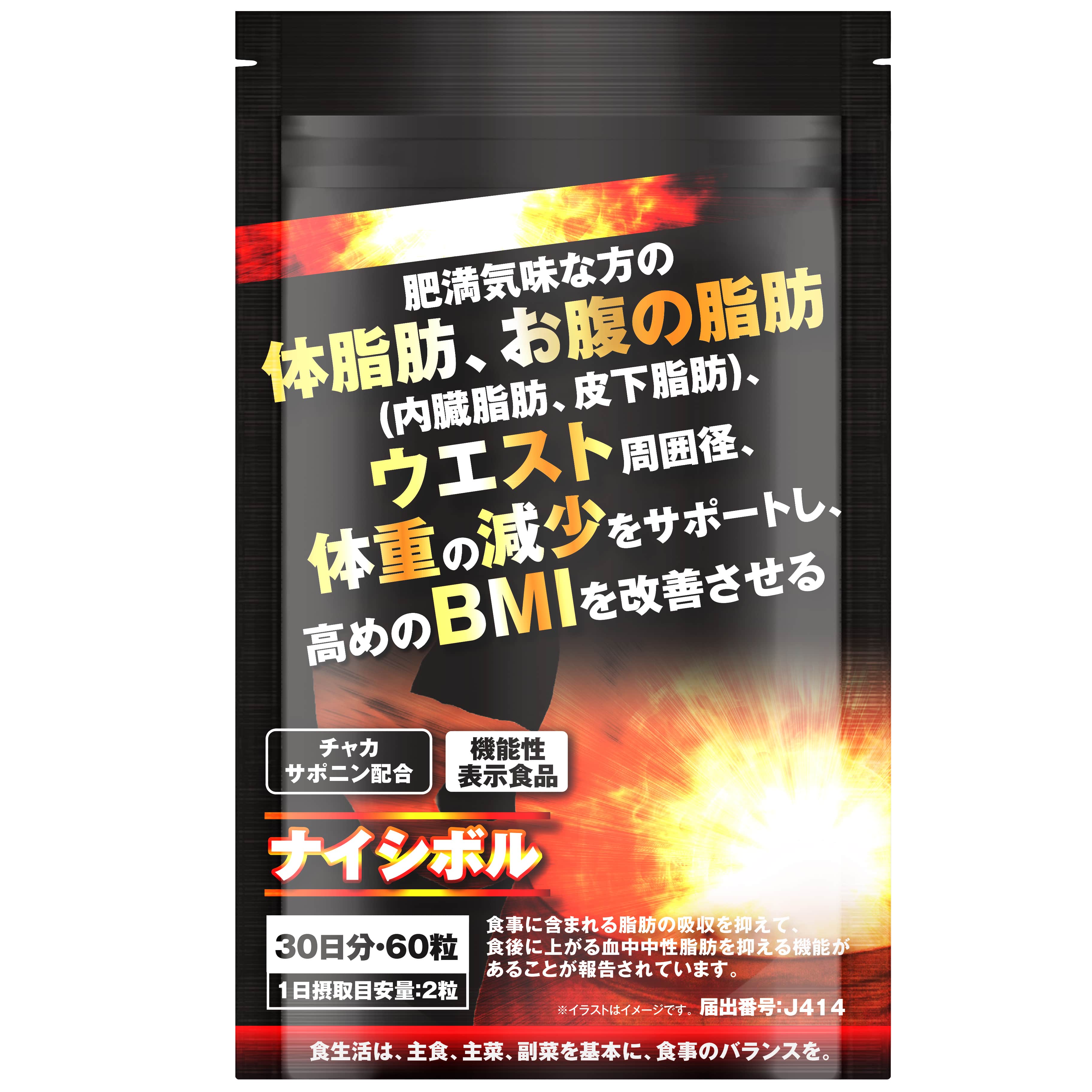 | 商品名 | ダイエットサプリ ダイエット サプリ お腹の脂肪を減らす ナイシボル チャカサポニン配合 内臓脂肪 皮下脂肪 BMI 肥満気味 な方の 体重の減少をサポート 高めのBMIを改善 機能性表示食品 60粒 |