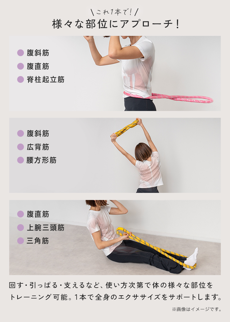 | ・本製品は医療機器ではありません。 ・首に巻くなど、本来の用途以外には使用しないでください。 ・長時間の連続使用はお避けください。 ・火気の近くや高温の場所での使用・保管はお避けください。 ・高温・多湿、直射日光の当たる場所での保管はお避けください。カビや変形、変色の原因となる場合があります。 ・周囲に人やペット、家具など、ぶつかるようなものがないか確認してからご使用ください。 ・体調がすぐれない時は、使用を控えてください。 ・お子様が使用される場合は、必ず保護者の目の届く範囲で、遊戯目的としてご使用ください。 ・激しく床に叩きつけたり、引きずったりしないでください。色移りや変色、キズの原因となる場合があります。 ・産後のエクササイズとして取り入れる際は、ご自身の体調を優先し、専門医に相談の上で少しずつ進めてください。 ・使用中に痛みや異常を感じた場合は、直ちに使用を中止し、医師にご相談ください。 ・運動による効果や体感には個人差があります。 ・サイズや色味は生産時期やロットにより若干の差異が生じることがあります。 ・商品の色味は、画面上の画像と実物とで多少異なる場合があります。 ・製品仕様やパッケージは、改良のため予告なく変更される場合があります。 ・商品到着時や開封直後のこもったニオイが気になる場合は、しばらく置いていただくと改善されます。 |