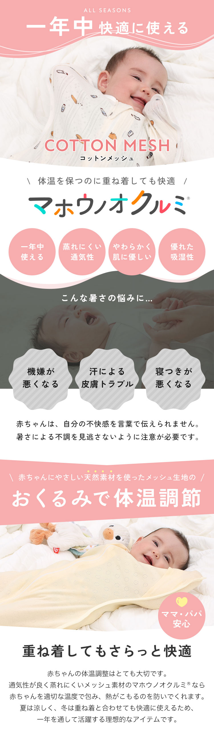 | 関連ワード | おくるみ スワドル 新生児 赤ちゃん 睡眠 夜泣き 出産祝い モロー反射 防止寝かしつけ 保育士監修 おしゃれ 退院 夏用 春 ベビーギフト ベビー用品 魔法のおくるみ スリーパー |