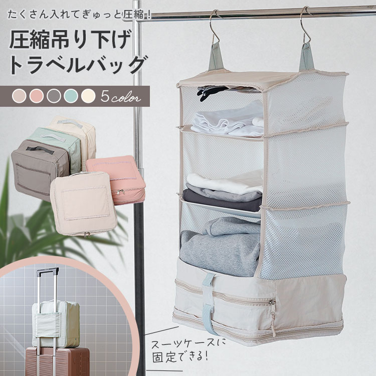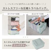 商品説明 | 仕切りごとに荷物を収納した後は ぎゅっと圧縮してファスナーを閉じるだけ! たくさん入れてもコンパクトになるのでパッキングが楽々。 ハンガーやホテルのクローゼットにひっかければ 旅先でもプチクローゼットが完成! 何度もスーツケースを開く必要がありません。 今っぽニュアンスカラーを採用し、見た目だけでなく 圧縮のしやすさや強度などの機能面での使いやすさにもこだわりました。 |