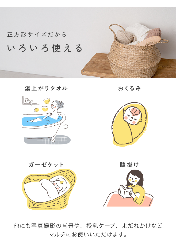 | 【2枚セット】イブル ベビー バスタオル ガーゼ タオル 6層 ガーゼケット 赤ちゃん 湯上がりタオル おくるみ くすみカラー 綿100% コットン ふんわり 優しい 肌触り 大判 110x110cm 正方形 スクエア型 出産祝い 新生児 ギフト 赤ちゃん 洗い替え ひざ掛け 授乳ケープ よだれかけ 写真撮影 背景布 ホワイト グレージュ ベイビーブラウン ブラウン ベイビーイエロー グリーン 淡色 ベージュ |