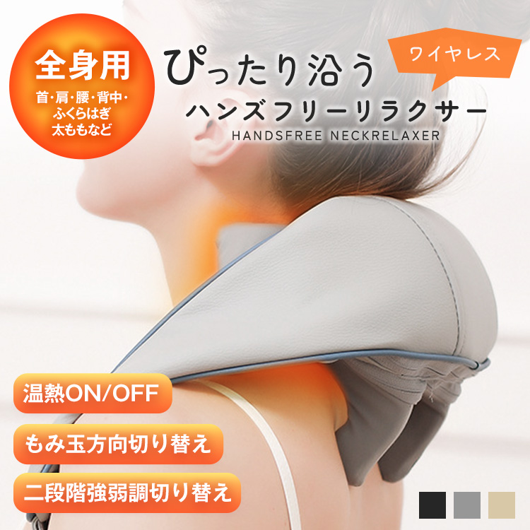 | 商品説明 | 充電式のコードレス仕様なので、充電さえしていればいつでもどこでも場所を選ばず使えます。 お好みの位置にもみ玉が当たるように調整できます。シーンに合わせて『手持ち』と『ハンズフリー』の2wayでお使いいただけます。 |