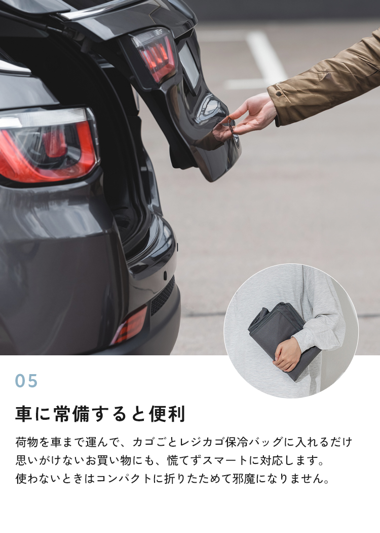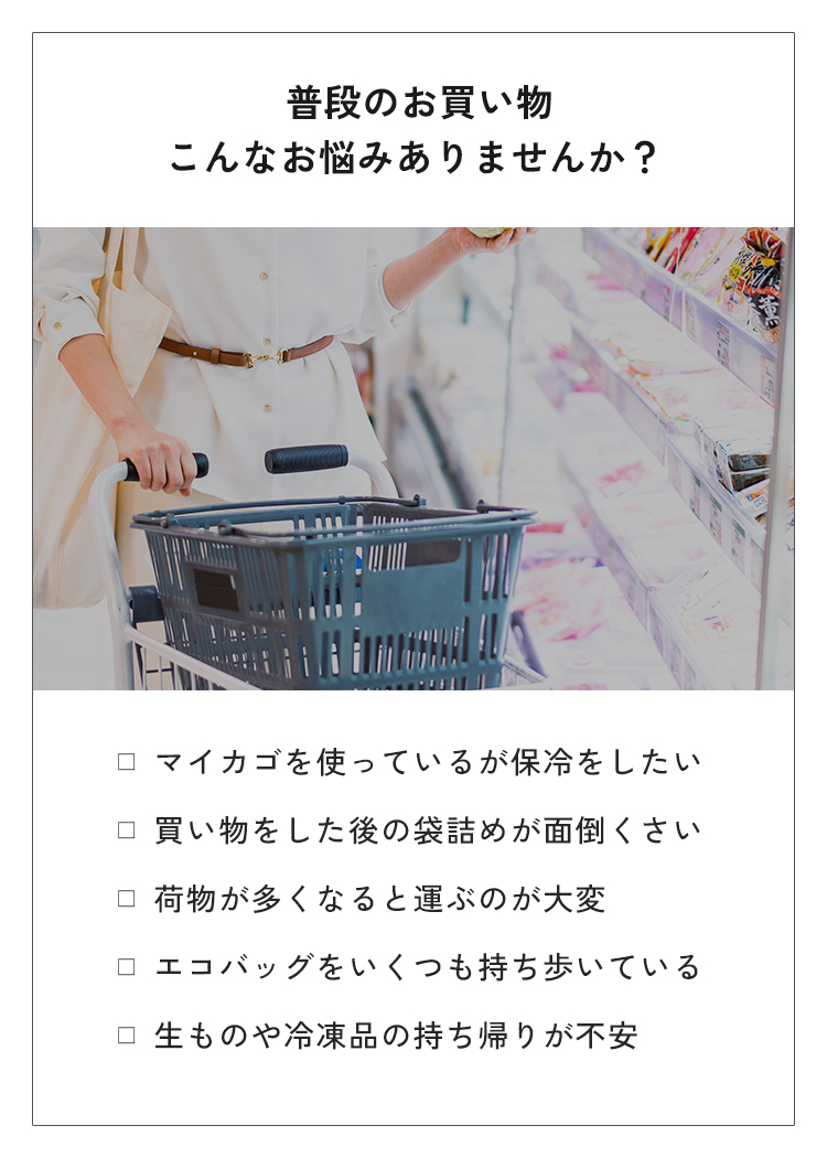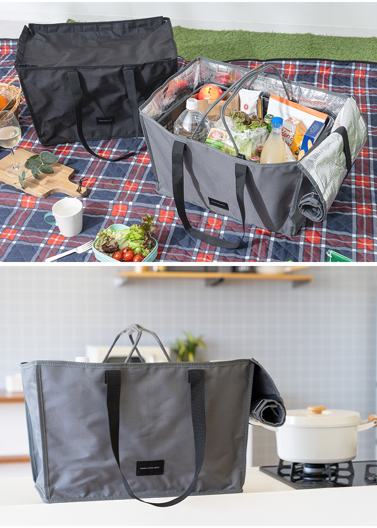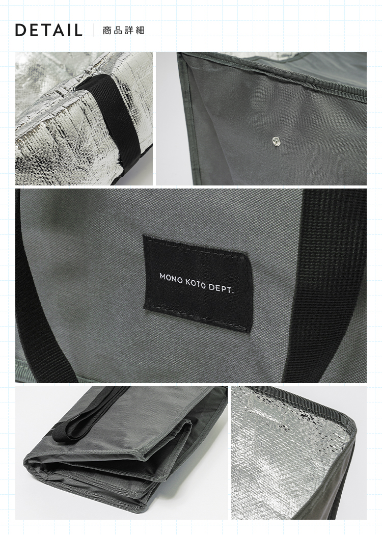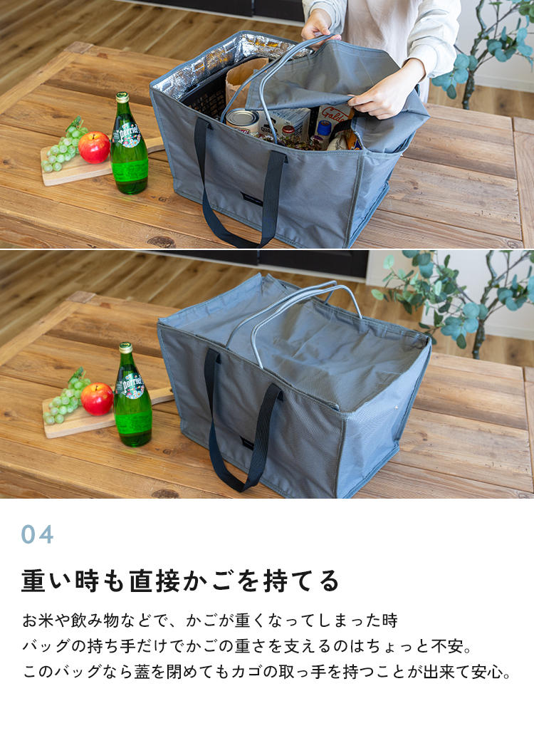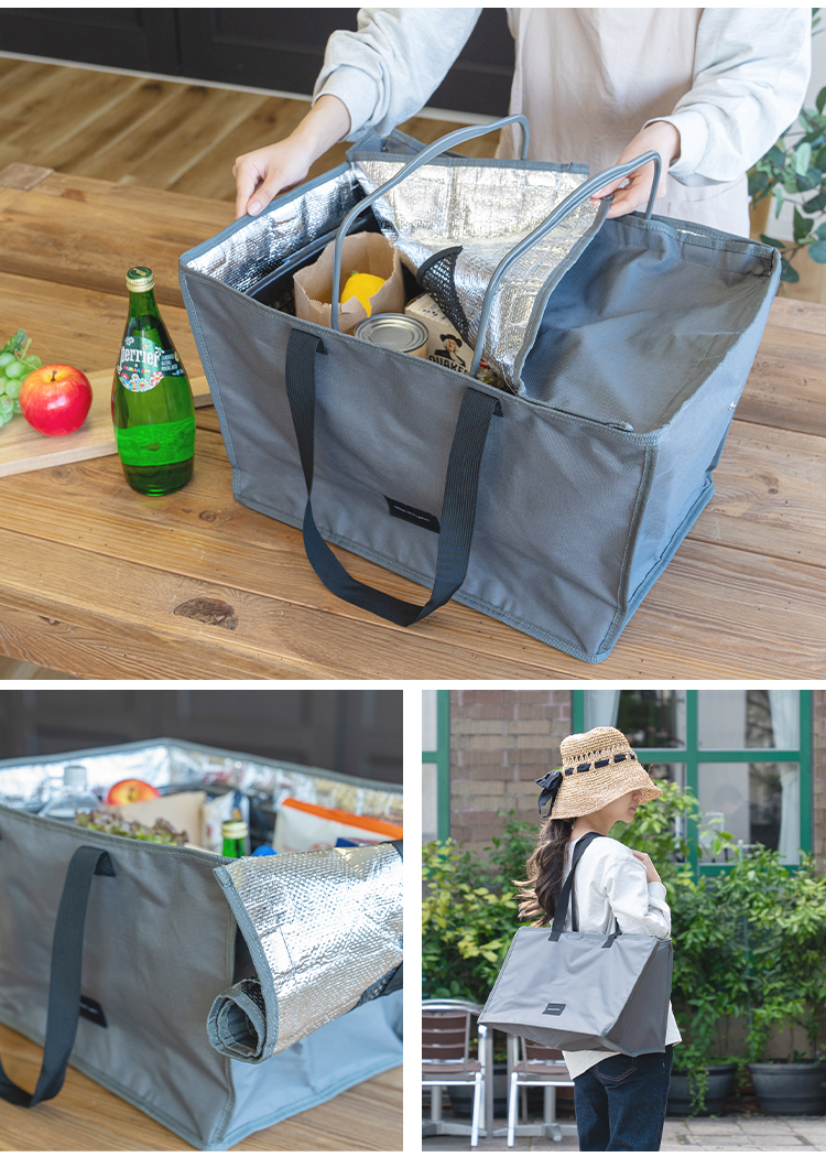 | 【商品説明】 レジカゴがすっぽり収納できる、大きなボックス型のバッグ。 保冷機能付きで暑い季節の冷凍・冷蔵品や生もの、ドリンクも安心。 折りたたみ可能で使わないときはスッキリ収納できる。 毎日の買い物をぐっとラクにするアイテムです。 ■サイズ 幅約50×奥行き約34×高さ約31cm ■カラー グレー / ブラック ■素材 表地:ポリエステル 裏地:ポリエチレン 持ち手:ポリプロピレン フタ部分:マグネット ■重量 約505g ■注意事項 ・本来の用途以外には使用しないでください。 ・カゴのサイズはお店によって異なる為、ピッタリ収まらない場合があります。 ・防水・防滴仕様ではありませんのでご注意ください。 ・水に濡れたり、摩擦や汗、日焼け等により、色落ち、変色することがありますのでご注意ください。 ・容量以上のものを詰め込んだり、極端に重いものや先の尖ったものを入れて使用しないでください。 ・汚れが気になる場合は、やさしく手洗いしてください。乾燥機や漂白剤は絶対に使用しないでください。 ・開封直後は、生地特有の匂いが残っている場合があります。使用していくうちに自然となくなります。気になる際はしばらく陰干ししてからご使用ください。 ・高温・多湿、直射日光の当たる場所での保管はお避けください。カビや変形、変色などの原因となります。 ・火気の近くや高温の場所で使用・保管しないでください。 ・製品仕様やパッケージは改良のため予告なく変更される場合があります。 ・素材の特性上、サイズや色味は生産時期やロットにより若干の差異が生じることがあります。 ・商品の色は、画面上の画像と実物とでは多少異なる場合があります。あらかじめご了承ください。 |