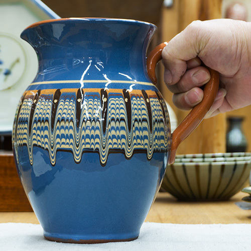 食器 ブルガリア トロヤン ピッチャー 1リットル ブルー スリップウェア