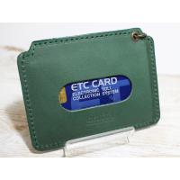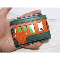 電車パスケース オレンジ・緑 革 レザー