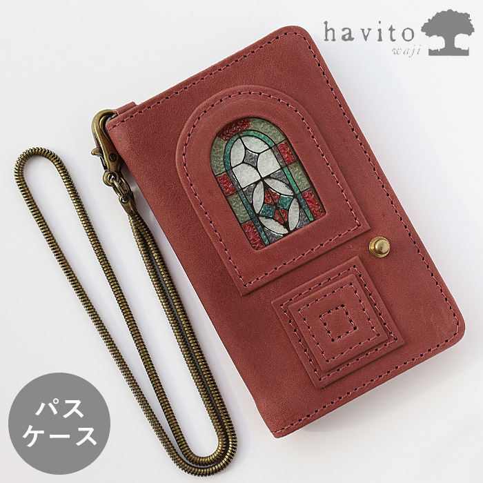 havito by waji (ハビト バイ ワジ) パスケース "glart" ステンドグラスのアンティークドア レッド レディース [H0213-RED]