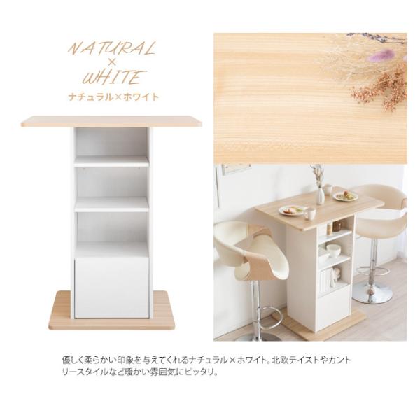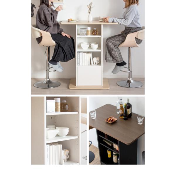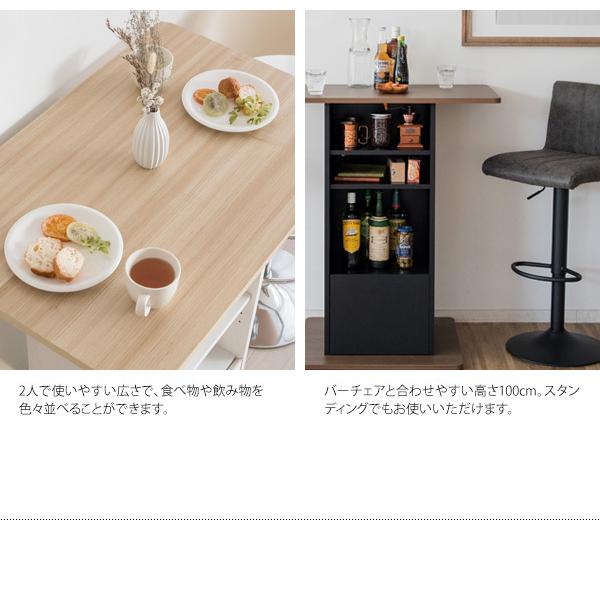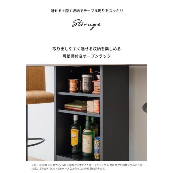 天板下には棚の位置を自由に変更できるオープンラックと、食品などが入れられる引き出しがありバーテーブルで使うものを色々収納できて使い勝手もバツグン。