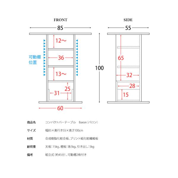 商品名 コンパクトバーテーブル Baron(バロン)