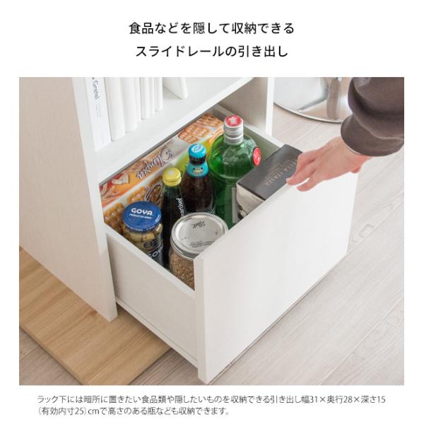耐荷重 天板:15kg、棚板:各5kg、引き出し:5kg