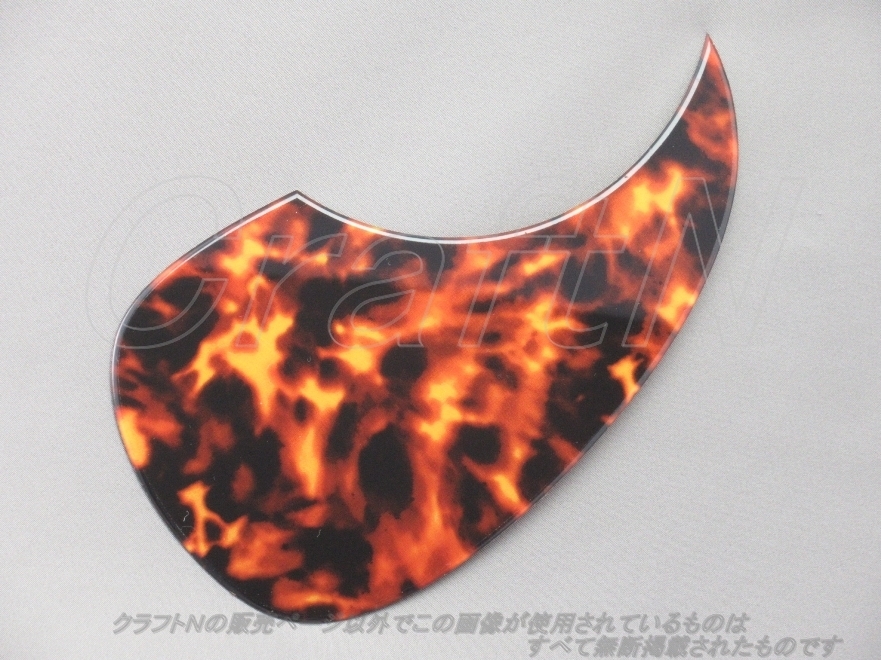 当店ではすでに本物のべっ甲に近い高級タイプのピックガードを何種類も販売していますが、この品は質的にも価格的にもバランスの取れた商品です。