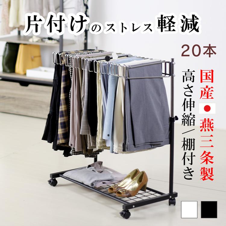 | ■国産 棚付き 高さ伸縮 スラックスハンガー 20本掛け ホワイト / ブラック | |||||