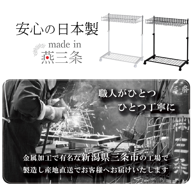 | 材質 | 本体/スチール(メラミン焼付塗装) ハンガー、上フレーム/スチール(クロムメッキ) |