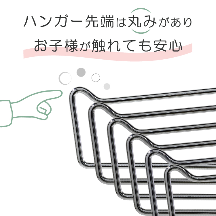| ハンガー部は塗装ではなく「クロムメッキ仕上げ」を選択。 スラックスを片づける動作を、滑らせて行えるのでストレスがありません。 | |||||