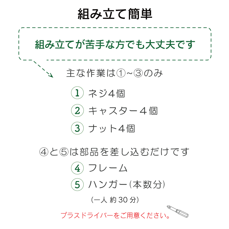 | 組立区分 | お客様組立品(1人で約30分) プラスドライバーをご用意ください |