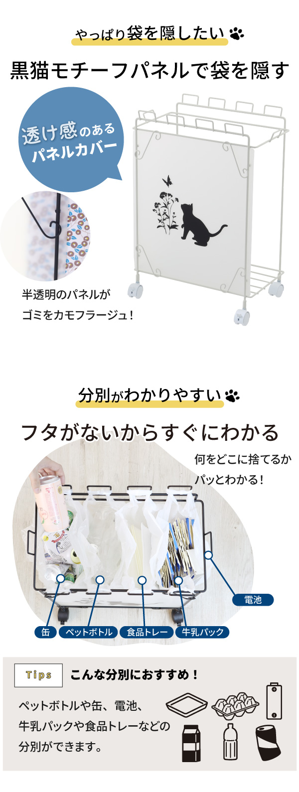 | 品名 | 分別ダストワゴン 黒猫モチーフ Mサイズ |