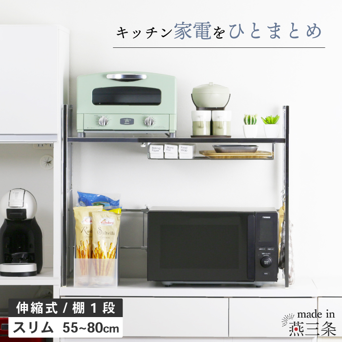 ステンレス棚 幅伸縮家電ラック 棚1段 幅スリム 頑丈 ( キッチン 収納 カウンター上 日本製)
