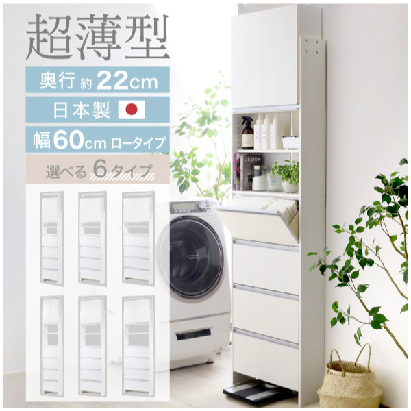 ランドリー収納 突っ張り 薄型 ラック 幅60 ロー 高さ 約204〜239 日本製 奥行22 洗面所 脱衣所 脱衣場 サニタリーラック 収納棚 川口工器
