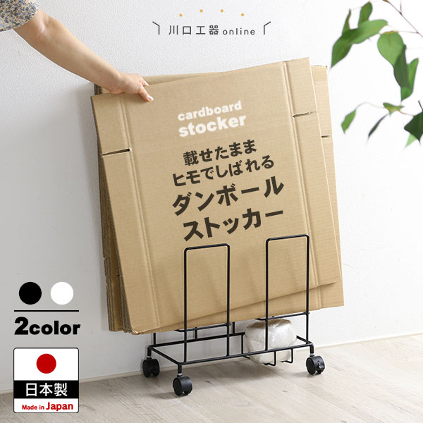 | 通販などで溜まるダンボールをコンパクトに立てて収納できる段ボールストッカー ☆第27回ニイガタIDSデザインコンペティション2017 審査委員賞受賞 ・収納したまま縛れてゴミ出しらくらく ・大きなダンボールも安心収納のハイタイプ ・紐ホルダー付きで縛り紐も収納OK 紐が転がり落ちるトラブルを防ぎます ・ストッパー付きキャスターで移動も固定も簡単 ・新潟県加茂市の工場で生産した、安心品質の国産品 ・頑丈耐荷重10kg ハイタイプは大きなダンボールも安心収納 ・すぐ使える完成品 ・スリムに使えるおしゃれなデザイン ・オフィスや店舗等にもおすすめ |