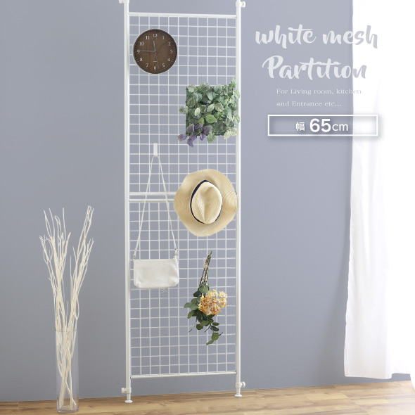 パーテーション 突っ張り 幅65cm 白 メッシュ 壁面 収納 間仕切り パーティション 3m つっぱり ネット ウォール ラック ホワイト