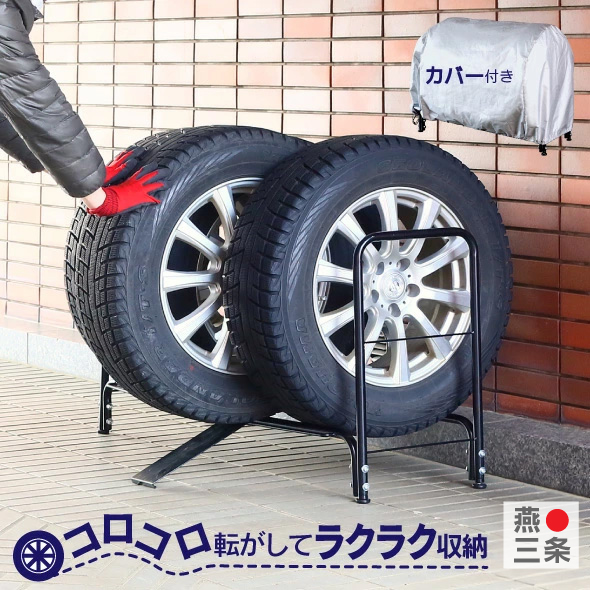スロープ付き タイヤ収納ラック カバー付き 燕三条製