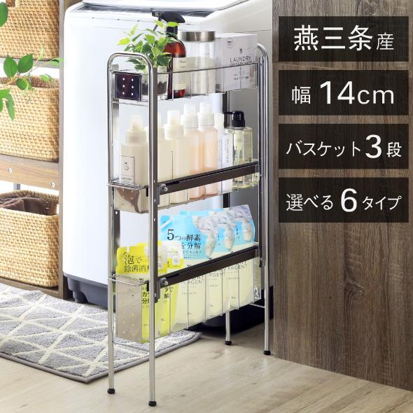 隙間収納 ランドリー収納 サイド ラック 3段 幅14cm ステンレス 段差対応 引き出し 隙間ラック スリム 燕三条