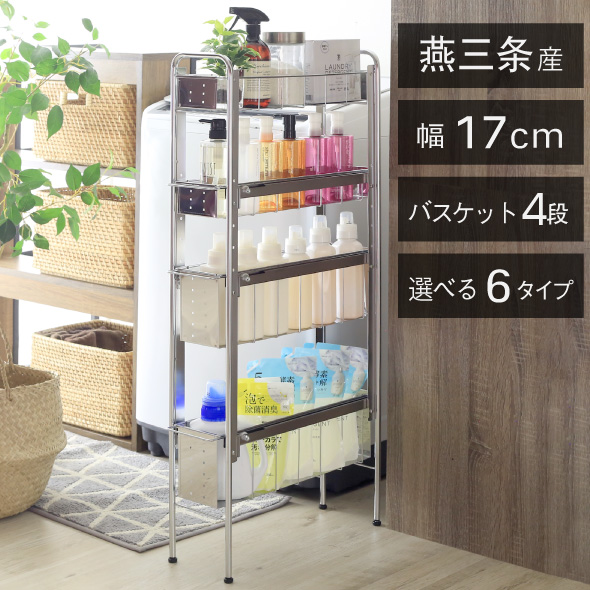 隙間収納 ランドリー サイドラック 4段 幅17cm 日本製 ステンレス 洗面所収納 段差対応 ランドリーラック スリム 川口工器