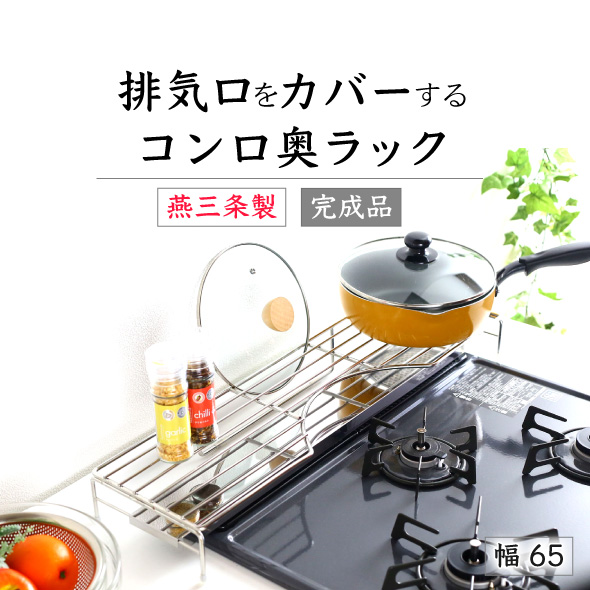 コンロ奥ラック 排気口カバー 付き ステンレス 幅 65 cm 日本製 完成品 コンロ奥 コンロカバー ガード グリルカバー ラック 60 川口工器 送料無料