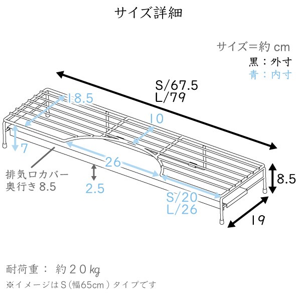排気口カバー付き コンロ奥ラック Sサイズ(幅65cm)