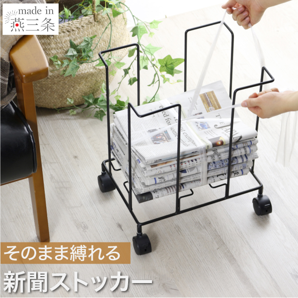 新聞 ストッカー ラック 収納したまま縛れる 燕三条製 キャスター付 雑誌ストッカー A4 新聞紙 雑誌収納 マガジンストッカー 紐通し