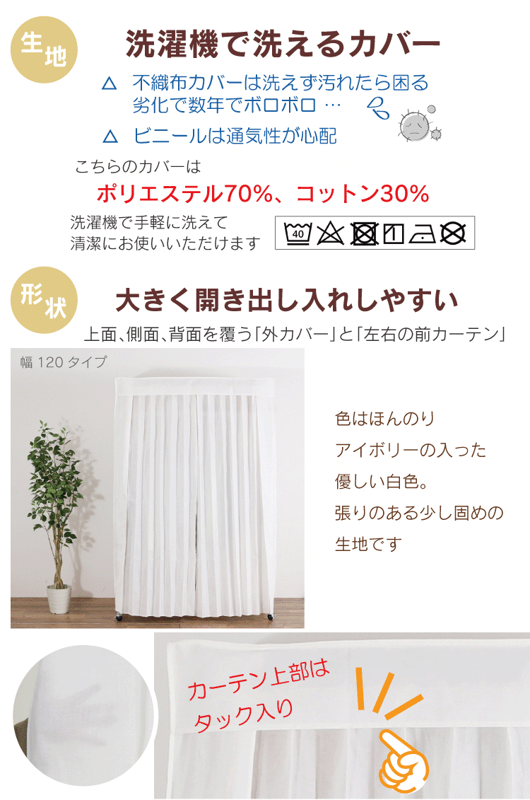 頑丈ハンガーラック 専用 カバー&カーテン 幅90タイプ 洗えるカバー 川口工器 カバー付きクローゼットハンガー 交換用カバー