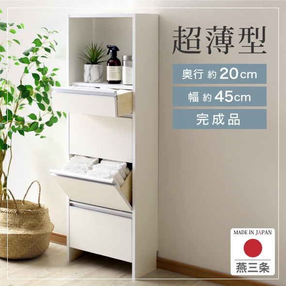ランドリー収納 薄型 ラック 引出し付きタイプ 幅45 完成品 日本製 奥行20 洗面所 脱衣所 脱衣場 収納 ランドリーチェスト おしゃれ 棚 収納棚