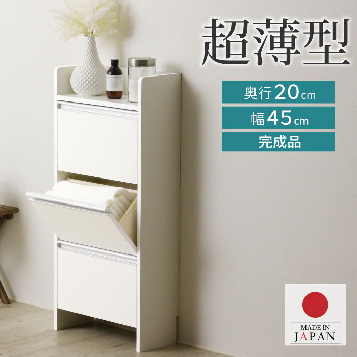 ランドリー収納 薄型 ラック ロータイプ 幅45 完成品 日本製 奥行20 洗面所 脱衣所 脱衣場 収納 ランドリーチェスト おしゃれ 棚 収納棚 フラップ
