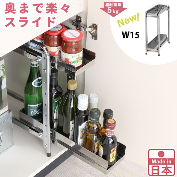 | 品名 | ステンレス棚シンク下スライドラック 2段 幅15cm |