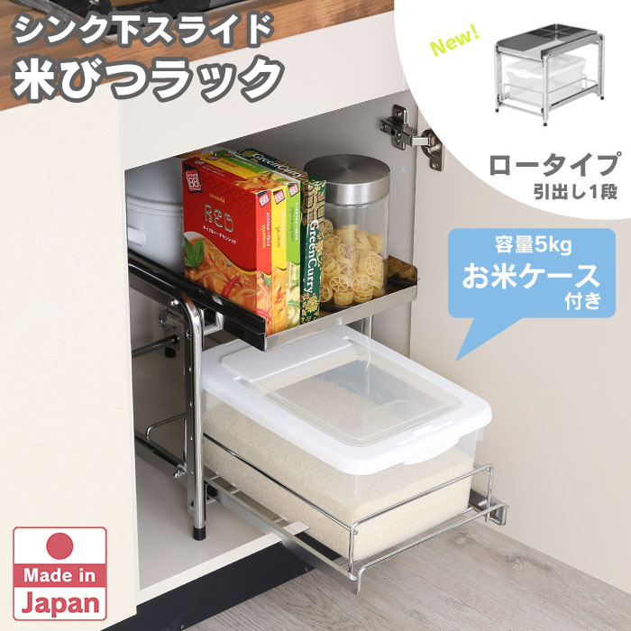 シンク下 スライド 米びつ ラック ロータイプ 高さ31.5cm 幅28cm 引出し1段 ステンレス 日本製 ( お米ケース 隙間 収納 燕三条製 )