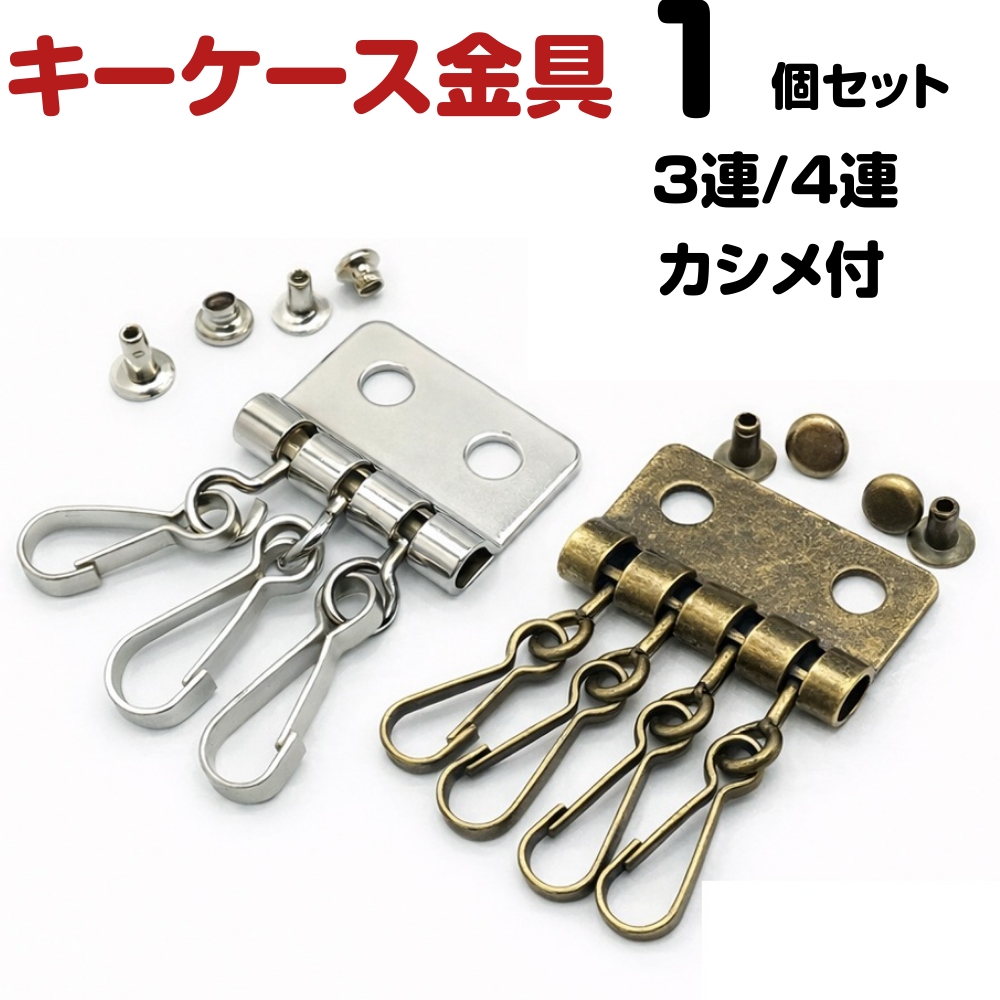 キーケース 金具 修理 交換 4連 3連 カシメ付 キーホルダー レザークラフト ハンドメイド パーツ アンティークゴールド シルバー