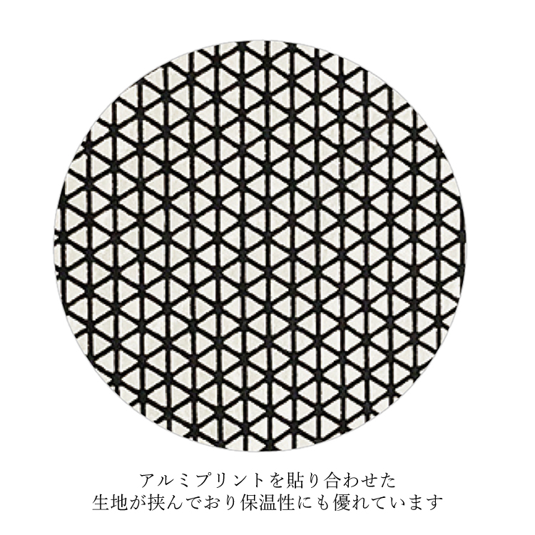 またアルミプリントを貼り合わせた生地が挟んでおり保温性にも優れています。