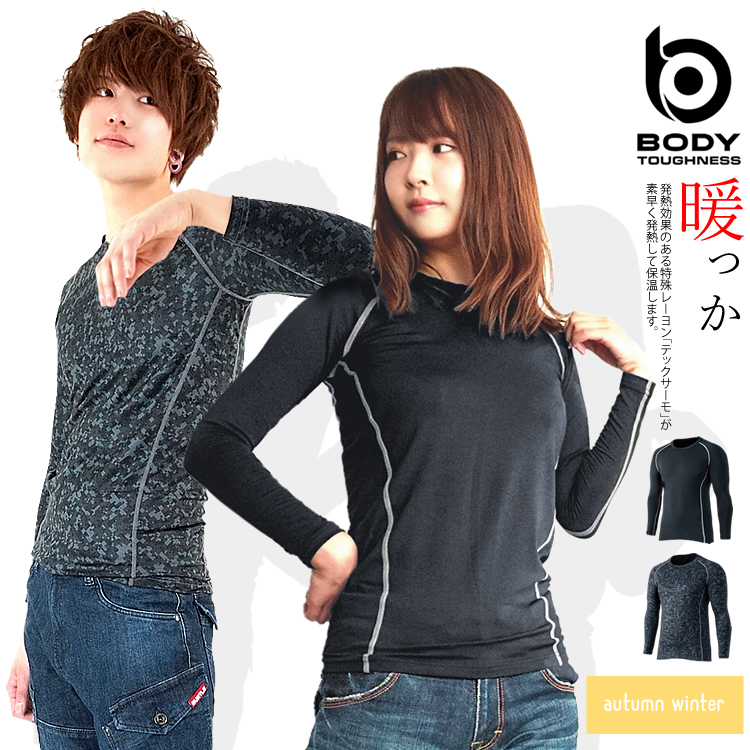 コンプレッション インナーシャツ 秋冬用 ホット インナー 防寒 保温 長袖 クルーネック ボディータフネス JW-174 (1枚までネコポス)