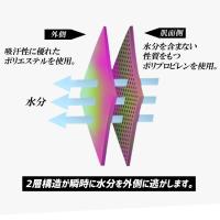 ポリエステルとポリプロピレンの2層構造の組み合わせで高い吸汗性と速乾性を可能としました。