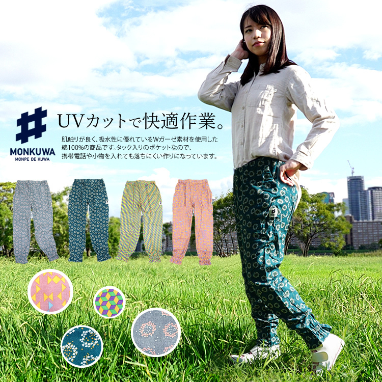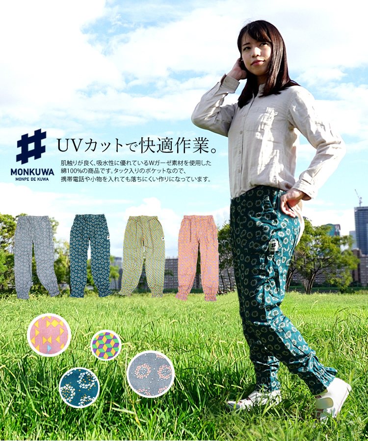 モンクワ monkuwa パンツ 農作業着 レディース ダブルガーゼ モンペ 農業 農業女子 ガーデニング MKS20202 (1枚までネコポス)