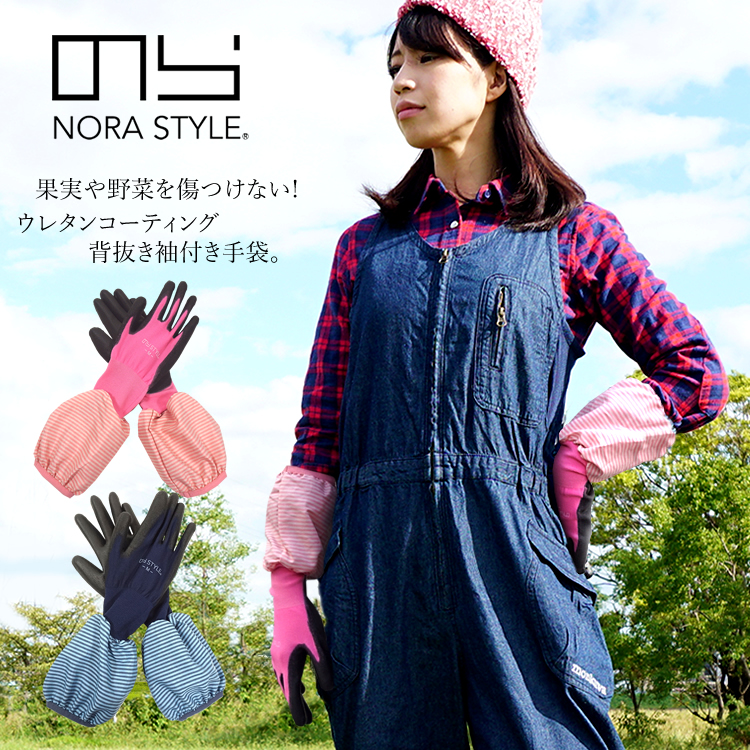 のらスタイル 新柄 手袋 袖付き ウレタンコーティング 背抜き 農業女子 ガーデニング NS-16 (2枚までネコポス)