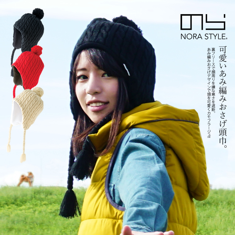 のらスタイル 帽子 おさげ頭巾 裏フリース 農業 NS-877 (1枚までネコポス対応)